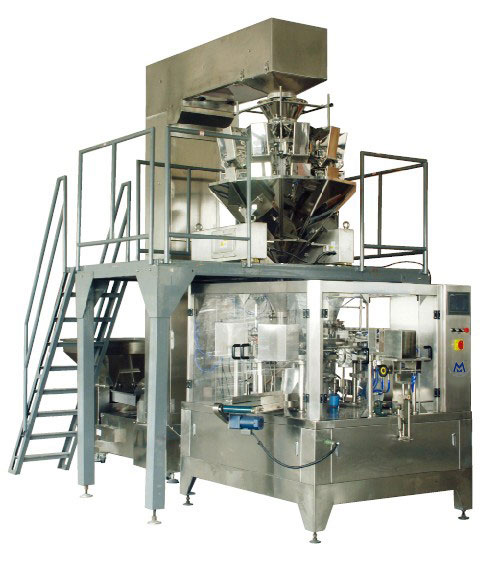 本機是在消化和吸取國內(nèi)外同類產(chǎn)品的先進經(jīng)驗的基礎(chǔ)上,研制出的新一代產(chǎn)品。它應(yīng)用廣泛,適用于各種物料的包裝。通過與液體灌裝機、組合秤、螺桿秤等配套使用,可進行液體、粉劑、顆粒、固體等各種物料的包裝,只需根據(jù)不同的物料選擇不同計量充填裝置即可。該機采用了國際知名品牌的PLC控制系統(tǒng)和觸摸屏的操作系統(tǒng),使用變頻調(diào)速裝置,在規(guī)定范圍內(nèi)可隨意調(diào)節(jié)速度;具有自動檢測功能(如不開袋或開袋不完整時,不加料,不熱封,袋子可再次利用。);當(dāng)工作氣壓或加熱管故障時,將有報警提示。根據(jù)生產(chǎn)需要可選擇工位要求(如六工位,八工位)。本機與物料接觸部位均采用優(yōu)質(zhì)不銹鋼制作。本機符合GMP要求。